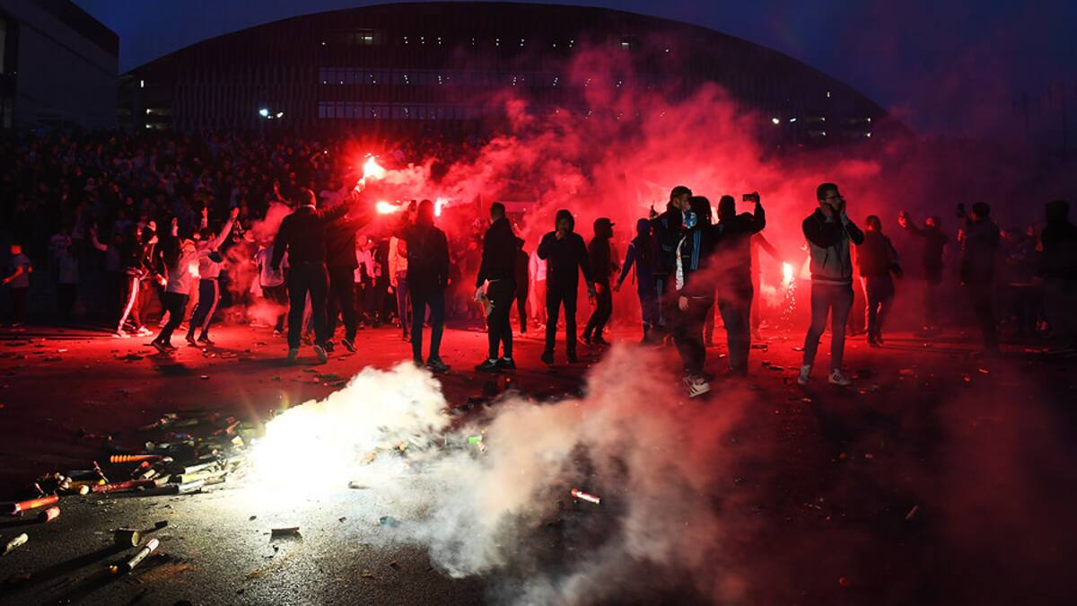 Poco antes del inicio del choque, entre 100 y 150 ultras encapuchados agredieron a miembros de seguridad en las inmediaciones del estadio, según la policía, mediante el lanzamiento de objetos contundentes.