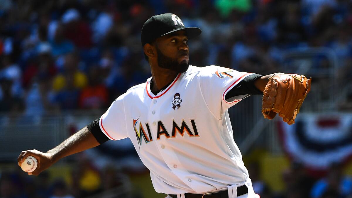 Con rectas de 97, 98 y 99 millas por hora propinó cuatro ponches de manera consecutiva, lo que se convierte en una marca para relevistas de los Marlins en juegos de Día de Apertura de temporada.