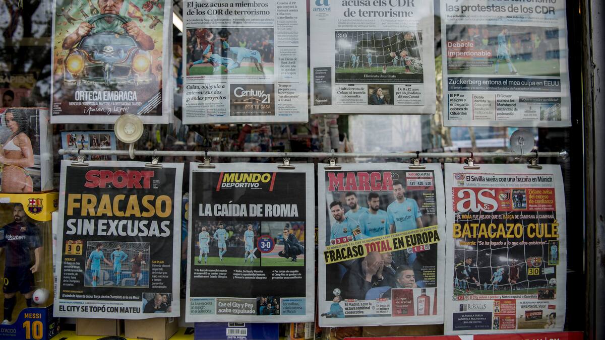 'Fracaso sin excusas', 'Batacazo culé', 'Fracaso total en Europa'... la prensa española no se anduvo con rodeos a la hora de calificar la tercera eliminación consecutiva del Barça en cuartos del torneo continental apuntando a la falta de ambición.