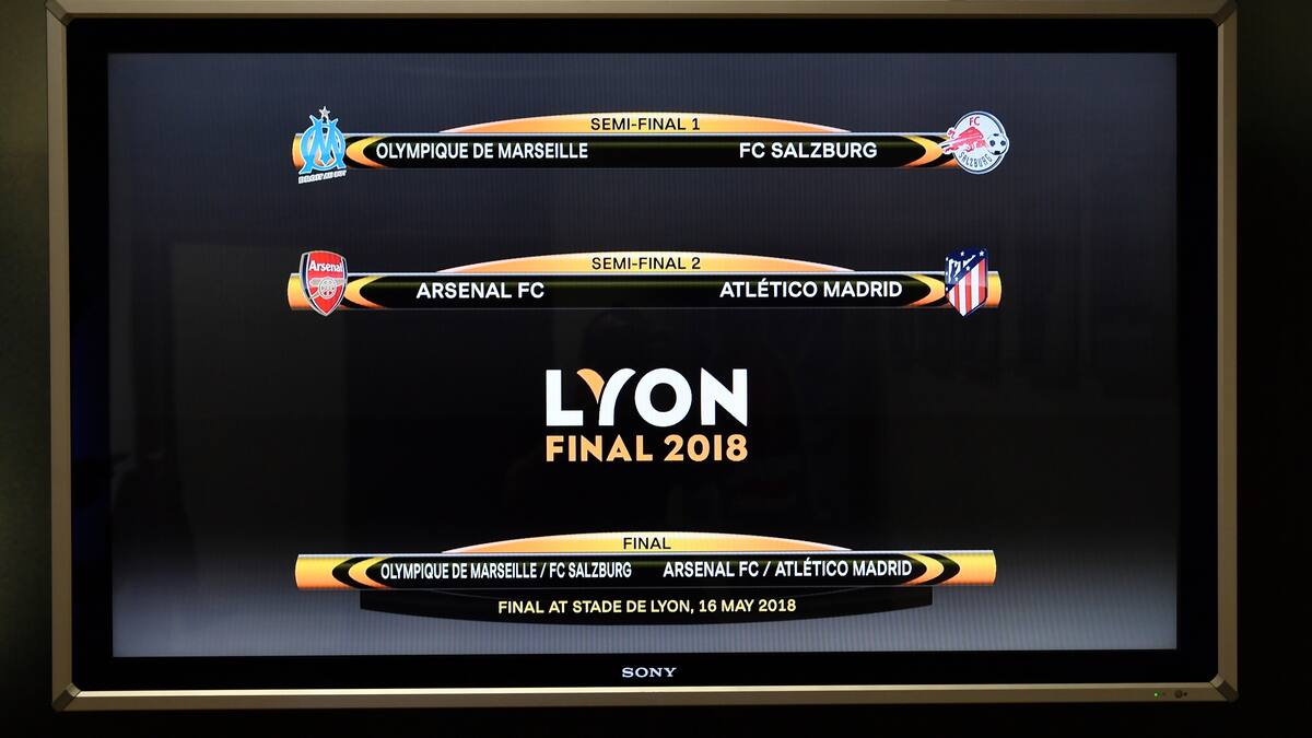 Arsenal y Atlético Madrid, los dos principales aspirantes a conquistar el título, vivirán una 'final' anticipada en 'semis' de la Europa League, mientras que Olympique de Marsella y Salzburgo dirimirán en la otra semifinal el nombre del equipo revelación, según deparó el sorteo realizado este viernes en Nyon (Suiza).