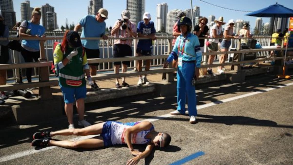 De acuerdo con la BBC, el escocés se mantenía en pie, pero debido al agotamiento por el fuerte calor sus pasos ya no iban en línea recta y su cuerpo pedía a gritos que se detuviera pero su mente estaba enfocada en terminar a como fuera lugar la carrera de sus sueños.