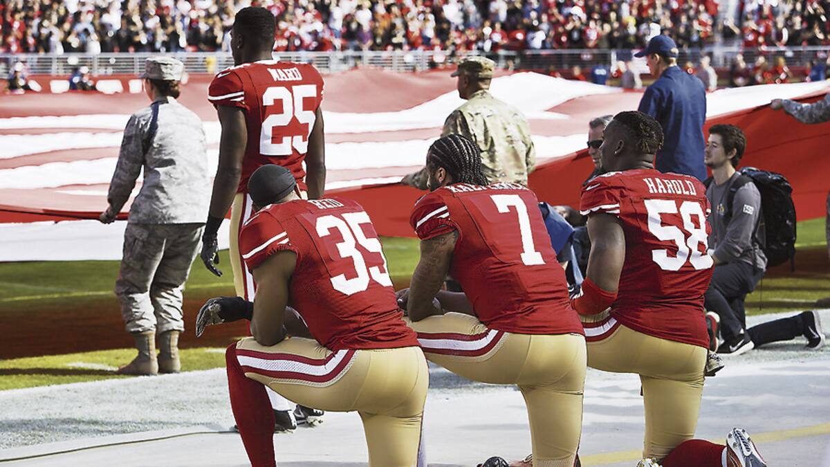 'Todos los jugadores y los miembros del equipo deben quedarse de pie y mostrar respeto a la bandera y al himno' estadounidense, indicó Goodell en un comunicado. 'Un equipo será multado si un miembro de su personal presente sobre el terreno de juego no se queda de pie y no respeta la bandera y el himno', añadió el comisionado.