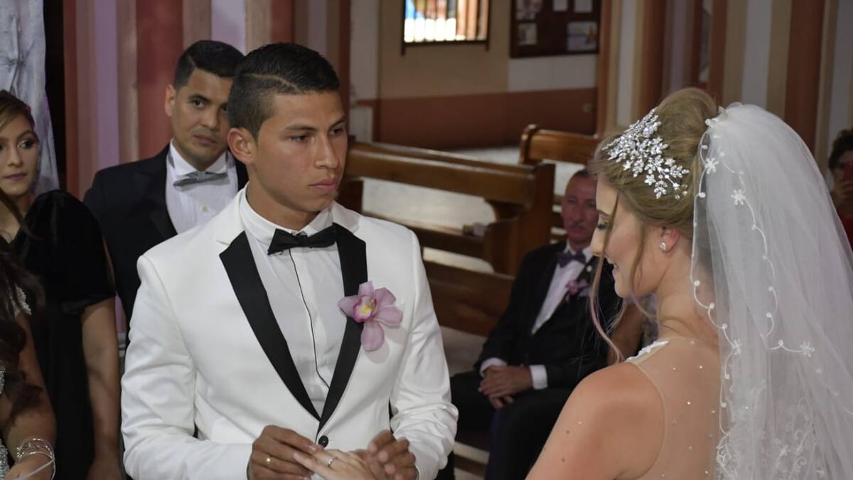 El jugador del Querétaro de México, de 24 años, y la esbelta rubia decidieron sellar religiosamente una relación que lleva cerca de tres años, con una ceremonia que empezó a las 5 de la tarde.
