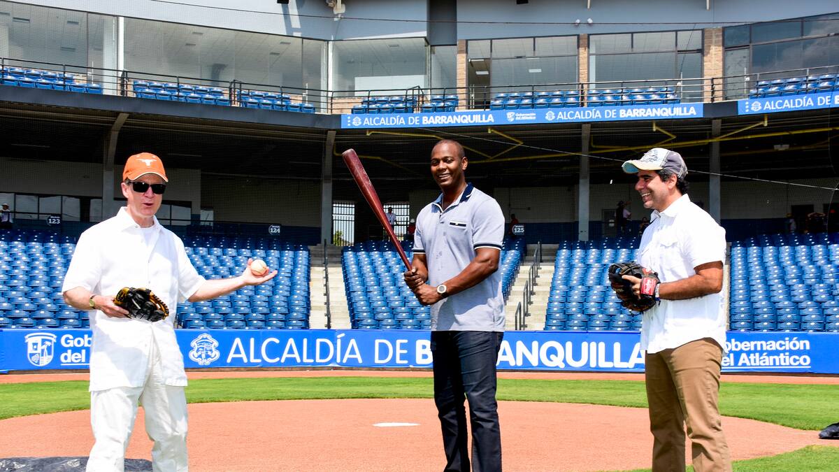 '¡Es hermoso!', exclamó el exdeportista al encontrarse con el alcalde Alejandro Char y el exembajador de Estados Unidos en Colombia, William Brownfield, quien también mostró su admiración hacia el nuevo espacio peloteril.