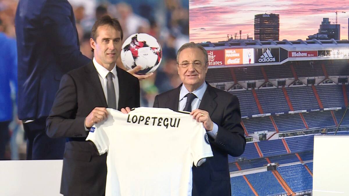 Julen Lopetegui fue presentado este jueves como nuevo entrenador del Real Madrid, un día después de ser destituido de la selección española por anunciar un acuerdo que en principio comenzaría a regir luego del Mundial.