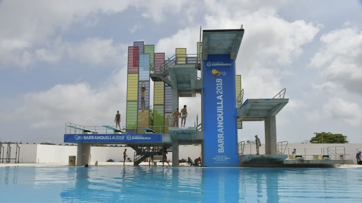Mientras los obreros dan sus últimas estocadas, las delegaciones de Natación y Clavados de Cuba y México realizan sus entrenamientos en el Complejo Acuático Eduardo Movilla, escenario dispuesto para los Juegos Centroamericanos y del Caribe, que se realizará en la ciudad del 19 de julio al 3 de agosto.