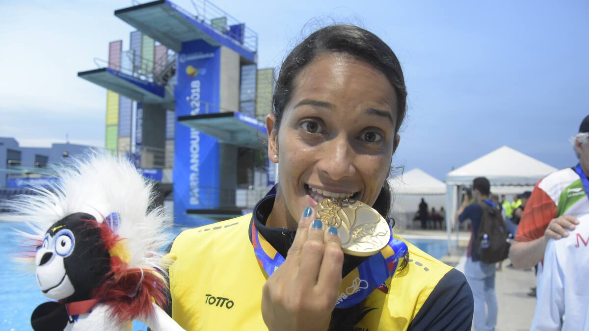 Diana Pineda logró su primera medalla de oro en unos Juegos Centroamericanos y del Caribe. Su logro lo obtuvo en el trampolín de un metro, en una prueba que admitió que tuvo su dificultad.