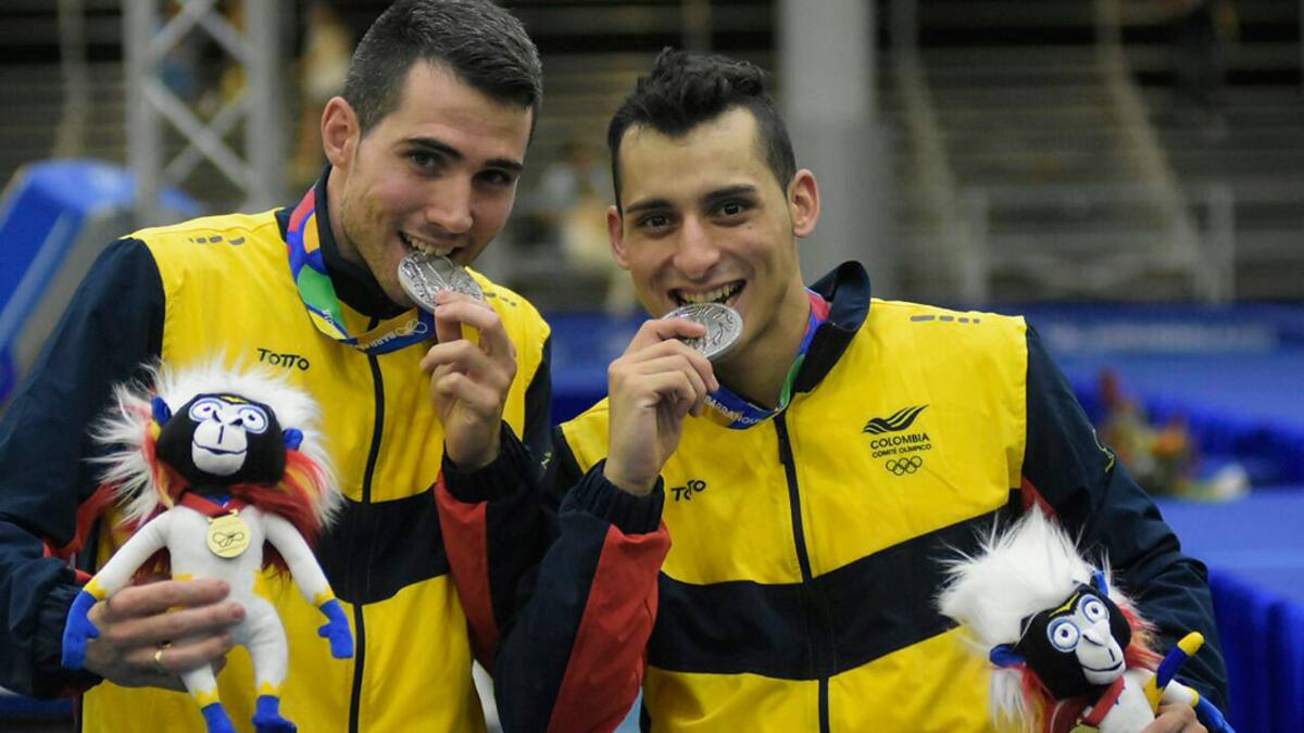 Amado Lozano y Luis Lorica recibieron un puntaje de 46.850 y fueron los mejores de la prueba que consiste en hacer una rutina por parejas saltando en dos trampolines.