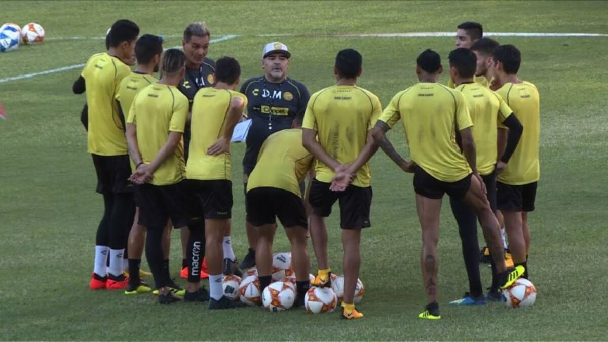 El astro argentino Diego Maradona dirigió el lunes su primer entrenamiento con los Dorados de Sinaloa. Su nuevo equipo marcha en la decimotercera posición, sobre 15, en el circuito de ascenso mexicano.
