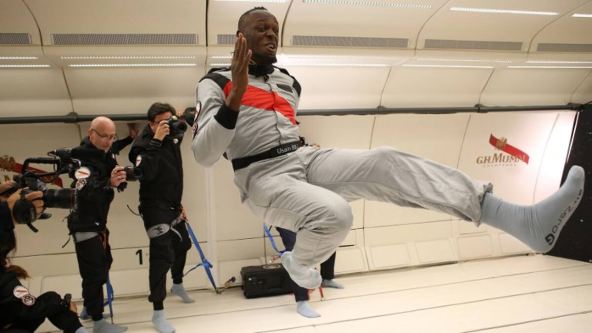 La leyenda del atletismo Usain Bolt intentó esprintar en un avión modificado en condiciones de ingravidez en Francia, el miércoles en un acto publicitario de una marca de champán de la que es embajador.