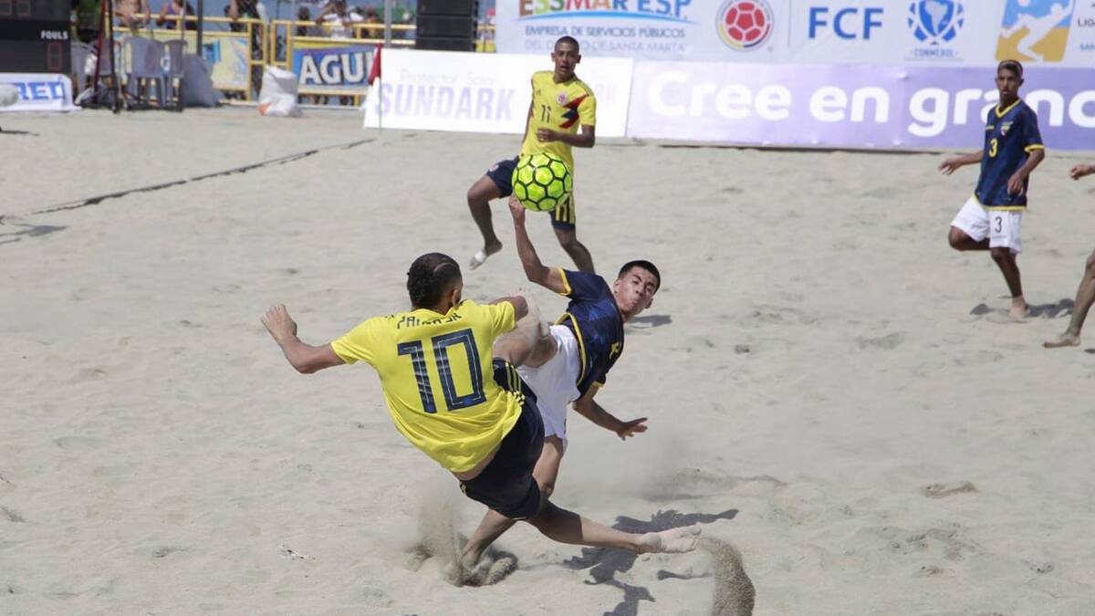 Las victorias de los juveniles de Colombia, en cobros desde el punto penal, y de Brasil, en el tiempo reglamentario, abrieron la Liga Suramericana de Fútbol playa que se cumple en Santa Marta y que tiene como escenario el balneario turístico El Rodadero. Las selecciones tuvieron como rivales a Ecuador y Perú, respectivamente.