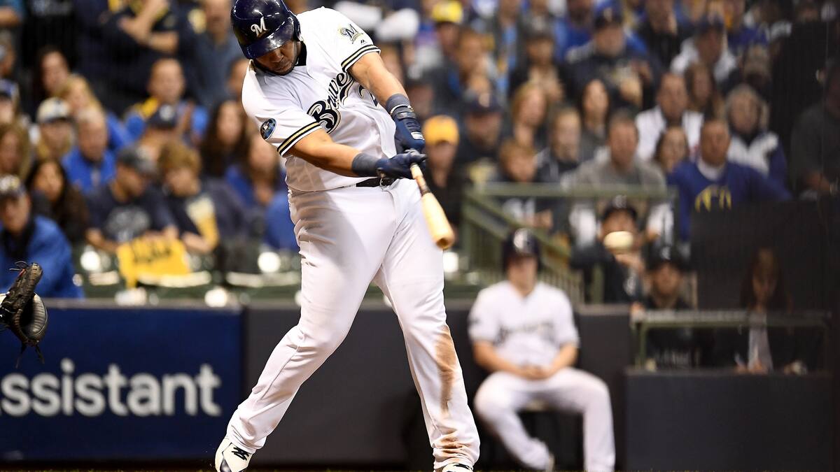En su primera participación con el madero en la mano, Aguilar bateó un doble al jardín derecho y Lorenzo Cain y Ryan Braun anotaron, poniendo en ventaja inmediatamente después a los suyos.