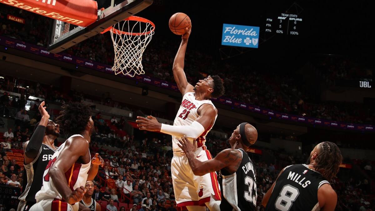 El pívot Hassan Whiteside se desbordó por el conjunto de Miami con 29 puntos, la friolera de 20 rebotes y nueve bloqueos para asegurar a su equipo una victoria de 95-88 sobre los Spurs.