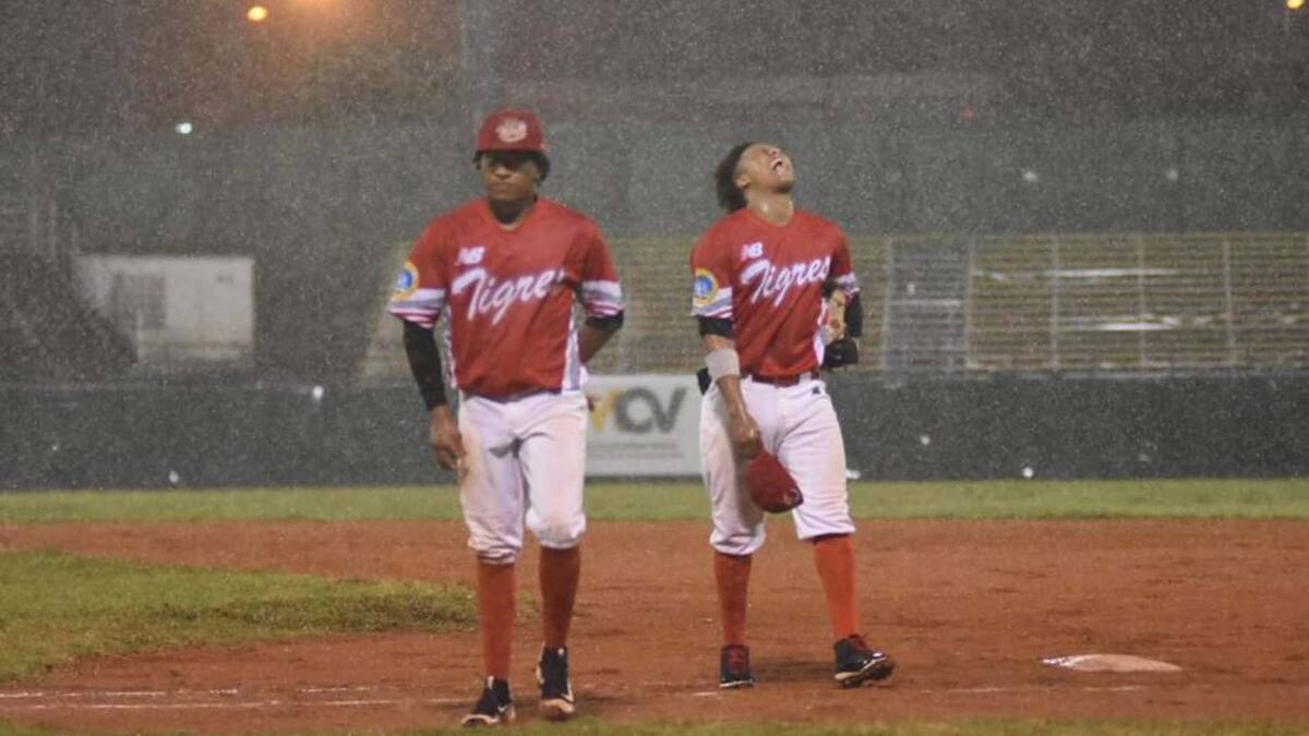 Por primera vez en la actual temporada de la Liga Colombiana de Béisbol Profesional el equipo de Cartagena, Tigres, le iba ganando con propiedad al líder sólido de la tabla del campeonato, Caimanes de Barranquilla, pero un torrencial aguacero frustró la noche para los felinos.