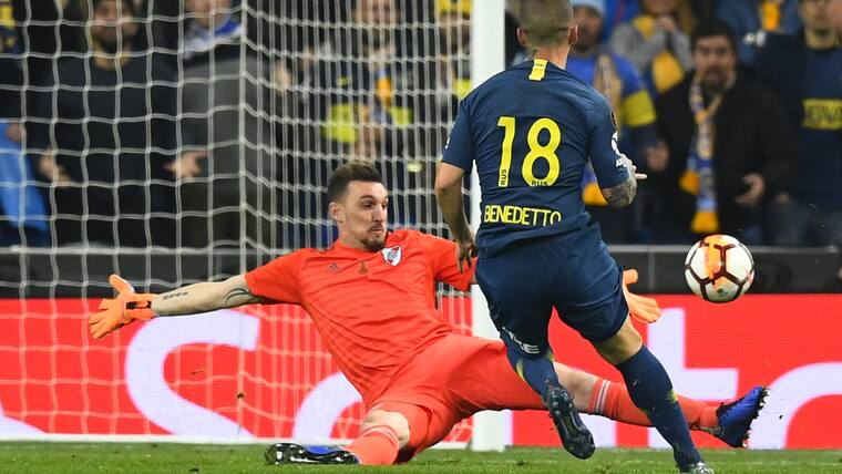 Reviva las mejores jugadas que se vivieron en el mítico Santiago Bernabéu, tras la final de la Copa Libertadores 2018; en la que Juan Fernando Quintero le dio la victoria a los "millonarios" al descontar el marcador con el segundo gol. Mientras que en una jugada de contragolpe, Gonzalo Martínez anotó el tercero de la noche, quedando el marcador final 3(5) - 1(3). Esta es la cuarta Copa Libertadores que suma a títulos ganados River Plate.