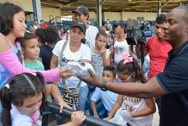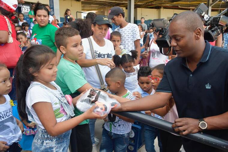 Al menos 200 menores llegaron este domingo, víspera de Nochebuena, al estadio Édgar Rentería para recibir, de manos del ‘Niño de Barranquilla’, su aguinaldo navideño.