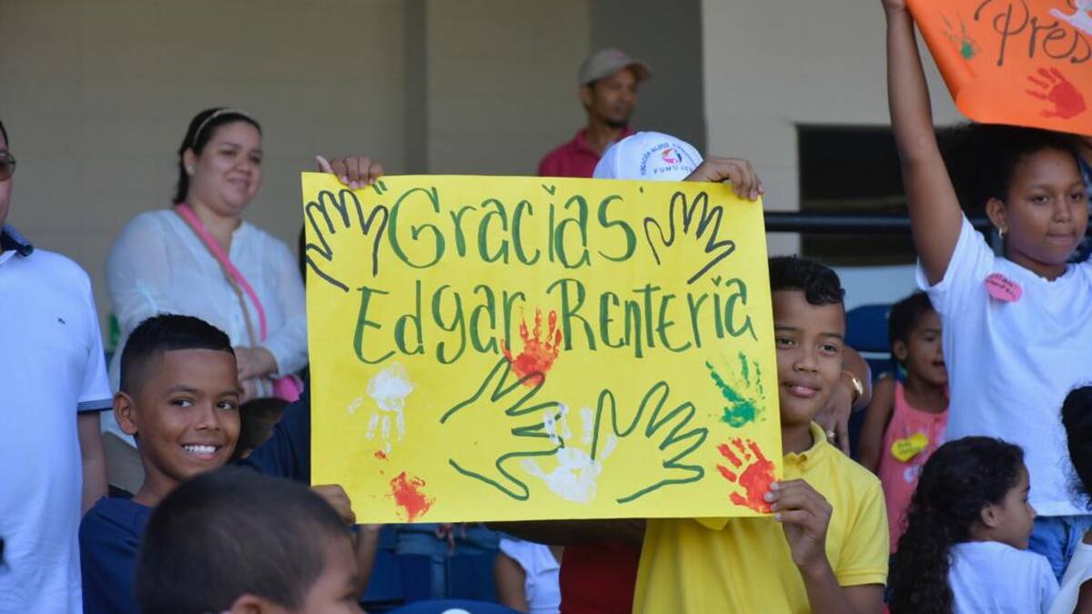 Al estadio de béisbol llegaron los niños, quienes con gran alegría y ovación recibieron a Rentería. El barranquillero aseguró que una de sus satisfacciones es "sacarles una sonrisa" en esta época decembrina.