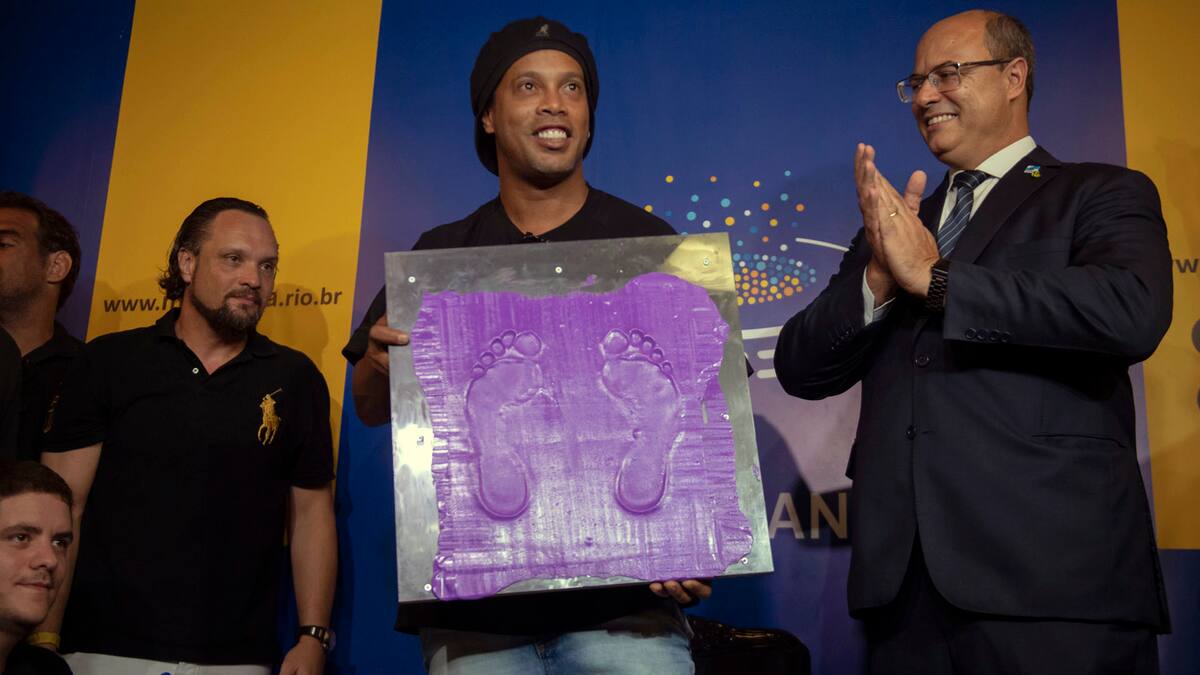 Durante el homenaje y la breve conferencia de prensa, Ronaldinho posó junto al nuevo gobernador de Río de Janeiro, Wilson Witzel, que lo consideró un 'ejemplo de vida' para los jóvenes de origen humilde.