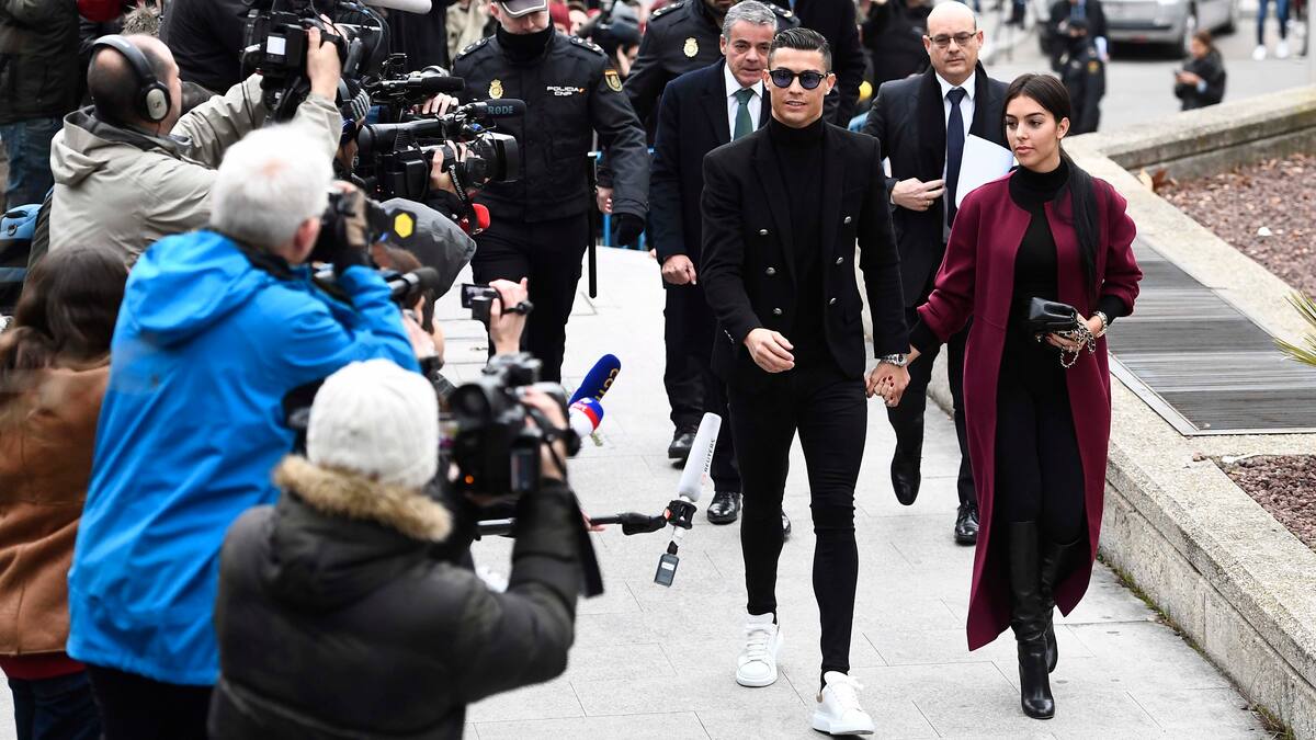 Con anteojos oscuros, traje negro y zapatillas blancas, Ronaldo llegó a la Audiencia Provincial en el norte de Madrid hacia las 09H40 (08H40 GMT), acompañado de su pareja, y la abandonó apenas 45 minutos después.