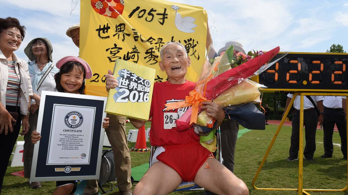 Miyazaki había corrido los 100 metros en un tiempo de 42 segundos y 22 centésimas en su ciudad de Kyoto en 2015, estableciendo el primer récord del mundo de más de 105 años un día después de su 105 aniversario.