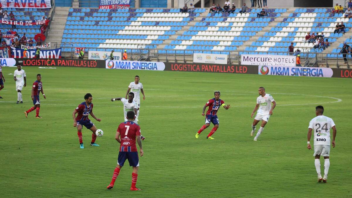 Cuando todo apuntaba a que el equipo local se iba en blanco de los primeros 45 minutos, en un tiro de esquina ejecutado por David Ferreira y se levantó el punto penal Márquez para embocarla al fondo de la red, logrando el descuento 3-1 para Unión Magdalena.