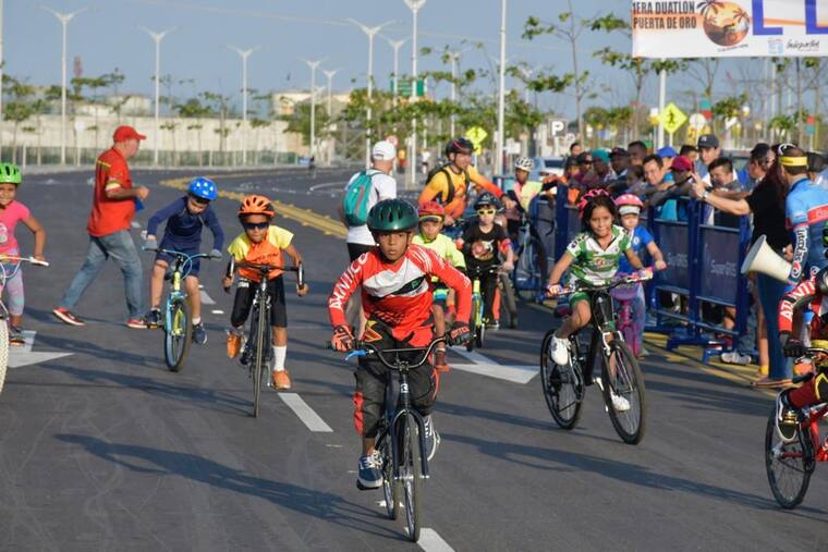 Deportistas de todas las edades participaron este domingo en la primera Duatlón de Oro y Festival Infantil de Ciclismo cumplida en la Avenida del Río organizada por el Club Deportivo Región Caribe. En esta primera edición compitieron niños entre los 7 y 12 años que corrieron hasta dos kilometros.