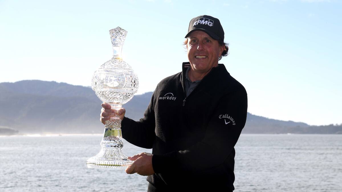 El estadounidense Phil Mickelson ganó ayer por quinta vez el torneo de golf de la PGA de Pebble Beach en San Francisco después de una cuarta y última ronda interrumpida la noche del pasado domingo por falta de iluminación.
