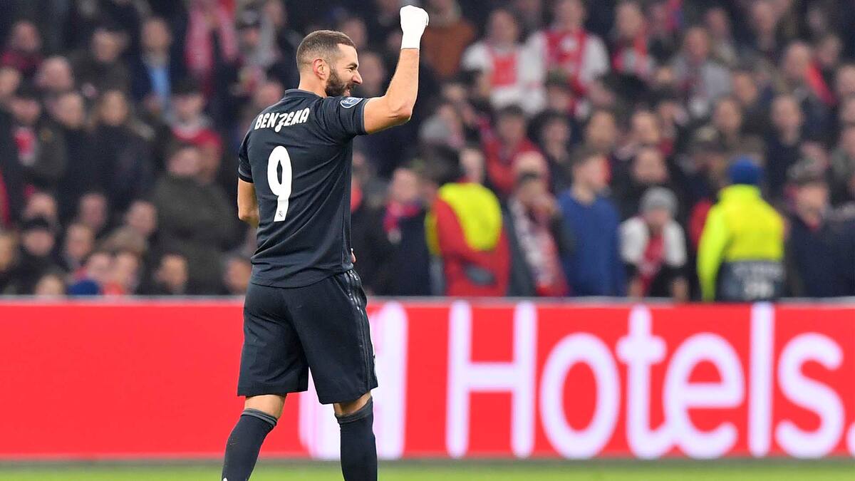 El delantero francés Karim Benzema anotó un gol en la victoria del Real Madrid al Ajax (2-1), este miércoles en la ida de los octavos de Champions, y se acerca al podio de goleadores históricos de la competición.