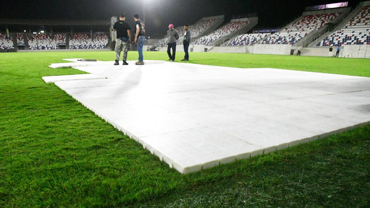 Erika Torres, directora de mantenimiento de Equiver, la empresa encargada de la protección y cuidado de la grama, señaló que la instalación de las estibas, que comenzó anoche, será finalizada hoy en la mañana.