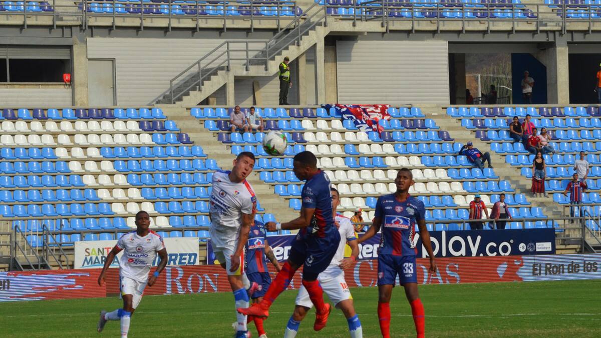 Los pelotazos y pases sin aciertos fueron la constante durante las primeras acciones del encuentro, que convocó menos de mil espectadores al escenario ubicado en el sector de Bureche, al sur de la capital del Magdalena.
