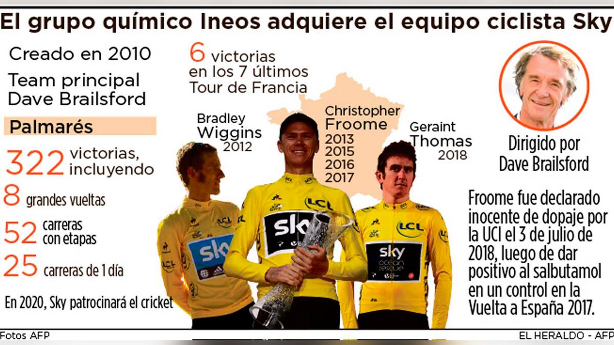 Ineos, cuya sede central está en Gran Bretaña, será el único propietario y continuará financiando el equipo dirigido desde su creación en 2010 por Dave Brailsford, que ahora se llamará Team Ineos y que se estrenará en el pelotón el 2 de mayo en la Vuelta a Yorkshire. El grupo respetará todos los contratos de los corredores de la plantilla.