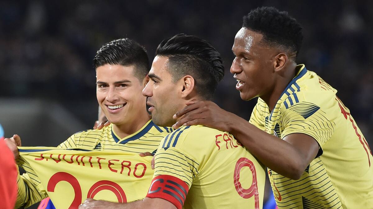 Luego del único tanto del partido, al minuto 63, el ‘Tigre’, James y Yerri Mina mostraron a las cámaras de televisión una camiseta con la dorsal (número 20) y el nombre de Quintero. '¡Para vos, Juanfer!', dijo el atacante samario.