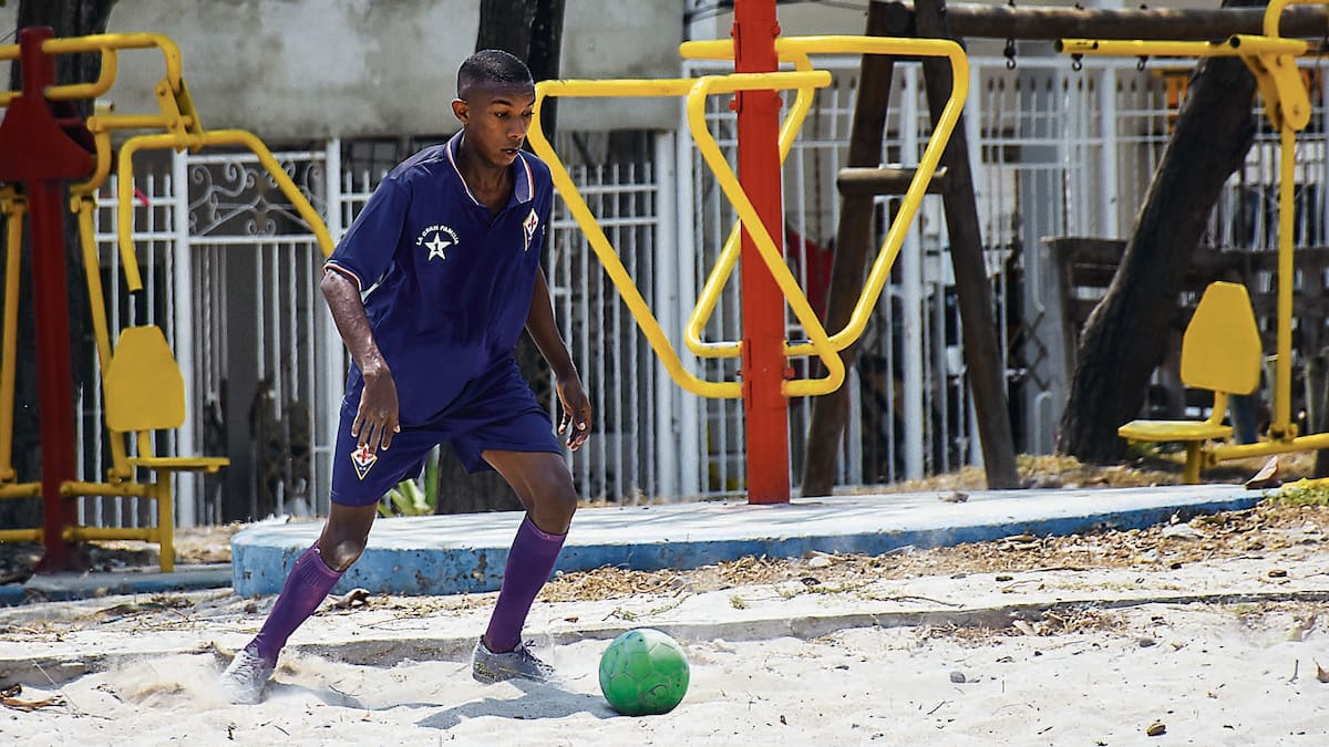 Los domingos son sagrados para este chico de 21 años. Se levanta temprano y el primer partido lo está jugando entre 9 y 10 de la mañana. 'Ya tengo seis años jugando en canchas de arena. Me dan miles de patadas, por las ‘marimondas’ que hago. Llevo el fútbol en la sangre, esto es de familia. El fútbol es el amor de mi vida. Los domingos me la paso ocupando jugando todo el día. Juego entre tres y cuatro partidos.