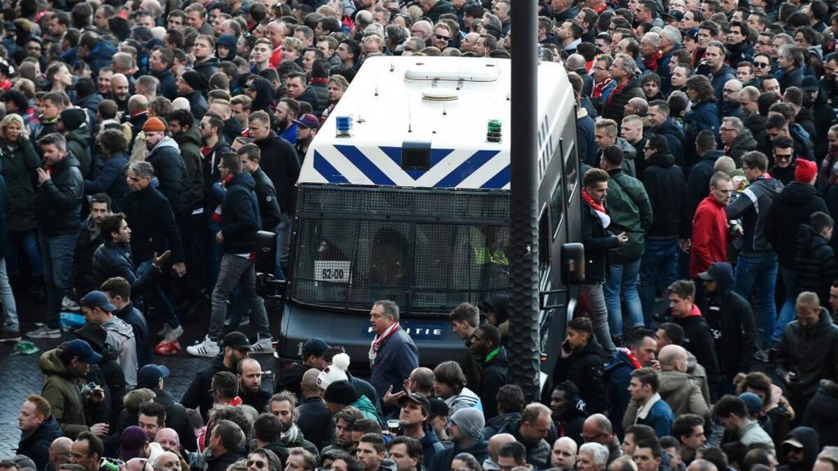 Un primer grupo de aficionados fue detenido a primera hora de la tarde en una estación de metro de Ámsterdam, seguido de una segunda ola de arrestos en el Johan Cruyff Arena, estadio donde se disputa el encuentro.