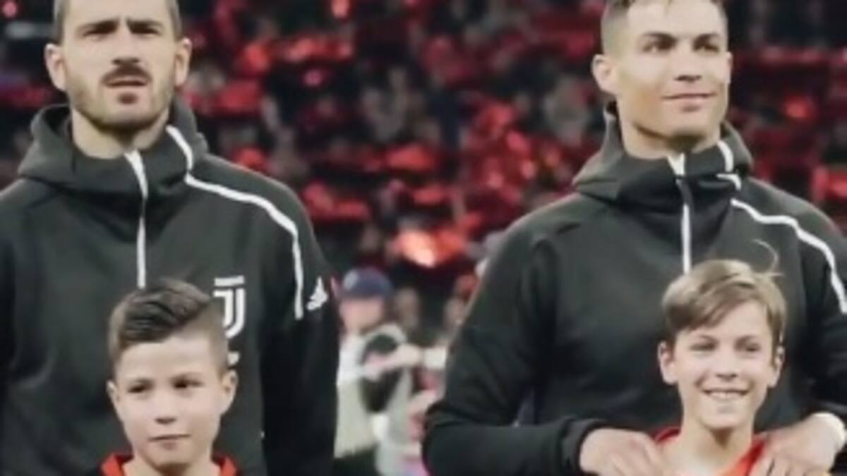Durante la ceremonia inicial uno de los menores acompañantes que se encontraba junto al jugador Leonardo Bonucci no pudo evitar girar su mirada hacía el astro portugués que se encontraba a pocos centímetros de distancia.