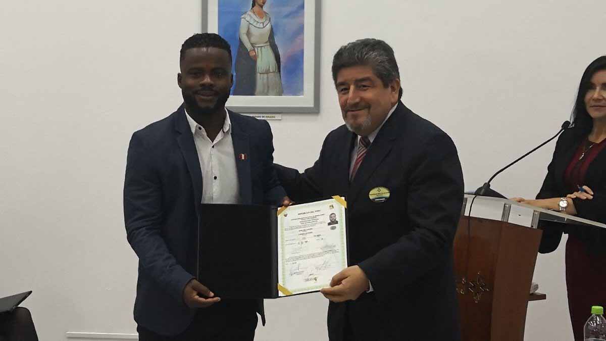 El futbolista recibió la nacionalidad peruana en una ceremonia junto a otros ciudadanos extranjeros en la sede de la Superintendencia Nacional de Migraciones de Perú.
