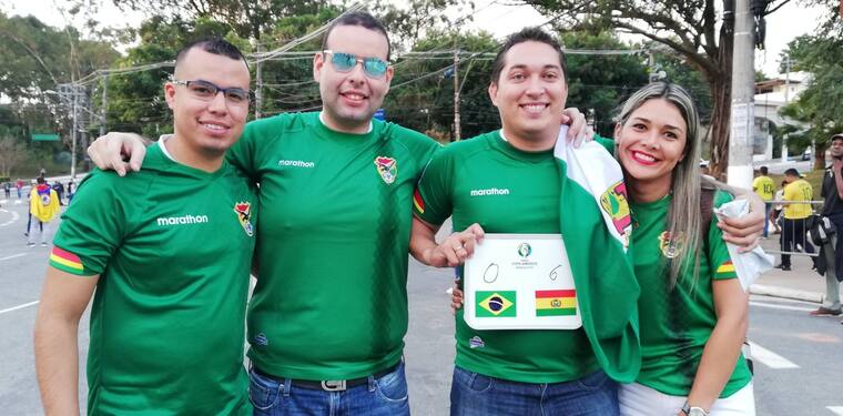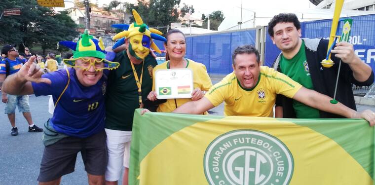 A pocas horas de comenzar el partido inaugural del torneo continental, los hinchas de ambas selecciones llegan al estadio Morumbí.