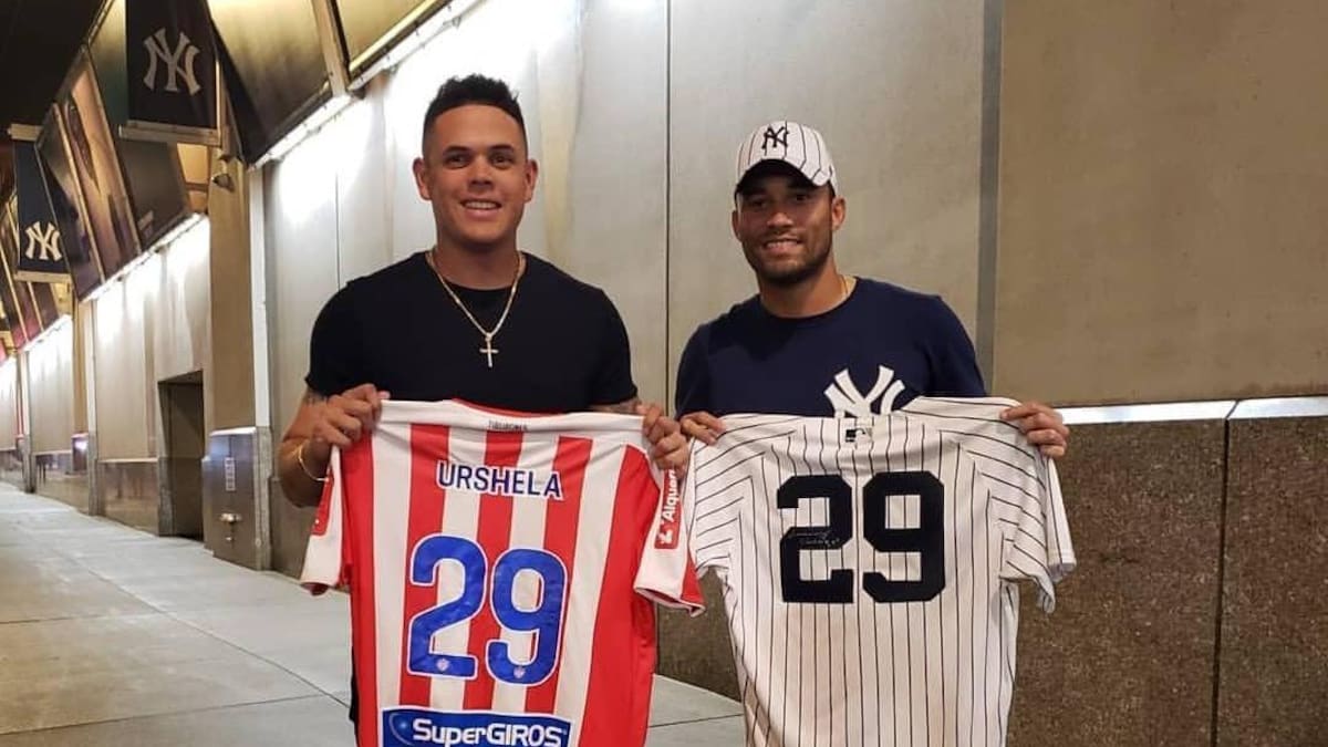 'Gracias Urshela por la invitación. Gran victoria de los Yanquis. Un abrazo y muchas bendiciones, papa, que elegancia', escribió Chunga junto a la imagen.