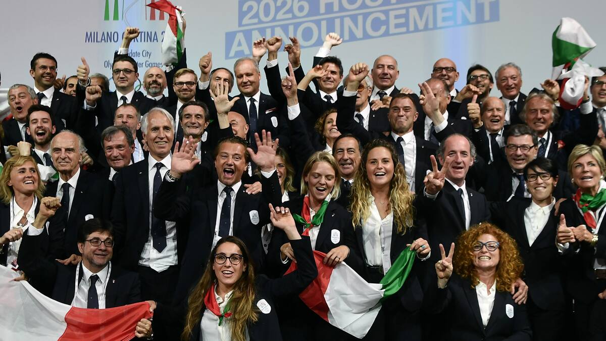 'Italia, Italia', gritaron a coro los miembros de la delegación ganadora de la votación al escuchar el nombre de la anfitriona por parte del presidente del COI, Thomas Bach.