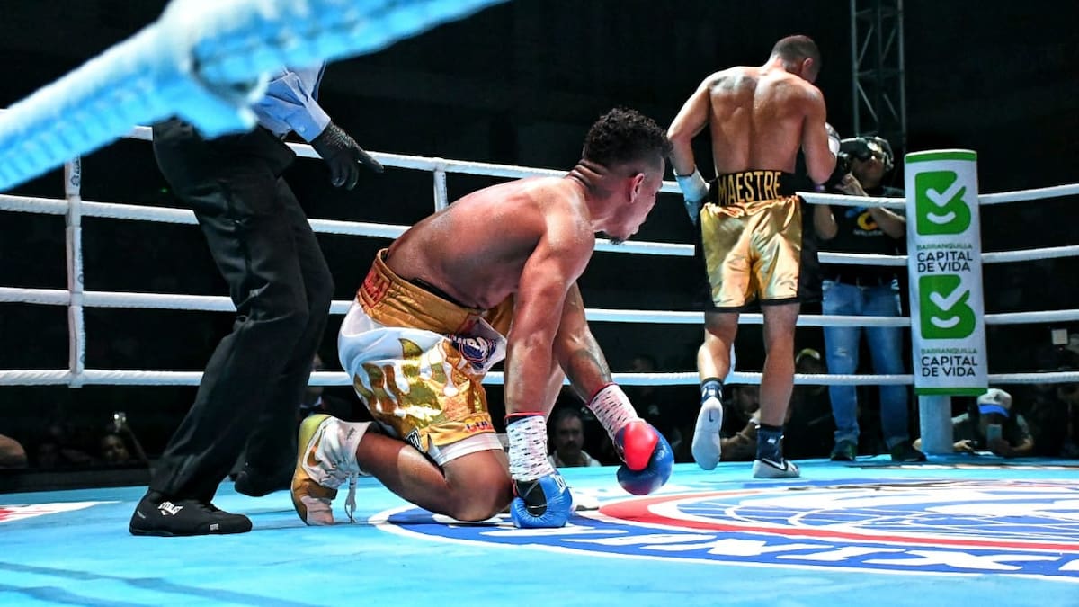 Apareció un meque y no de Jeovanis Barraza. El venezolano Gabriel 'El Capitán' Maestre resolvió en dos asaltos el pleito por el título Fedebol superwélter de la Asociación Mundial de Boxeo (AMB) y le quitó el invicto al púgil barranquillero quién ahora dejó su récord en 20-1,14 por la vía del sueño.