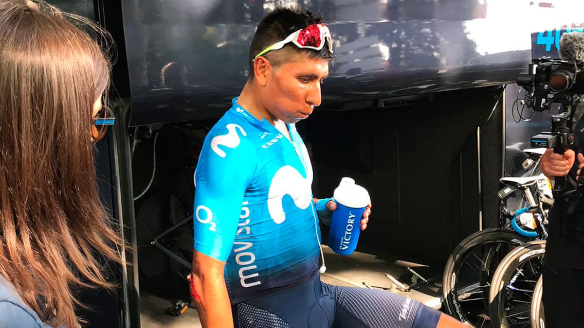 El colombiano Nairo Quintana, que se vio inmerso en una caída grupal a 30 kilómetros para el final de la undécima etapa del Tour de Francia, ayer cerca de Toulouse, sufrió pequeñas heridas en el codo derecho pero va 'bien', anunció su equipo, el Movistar.