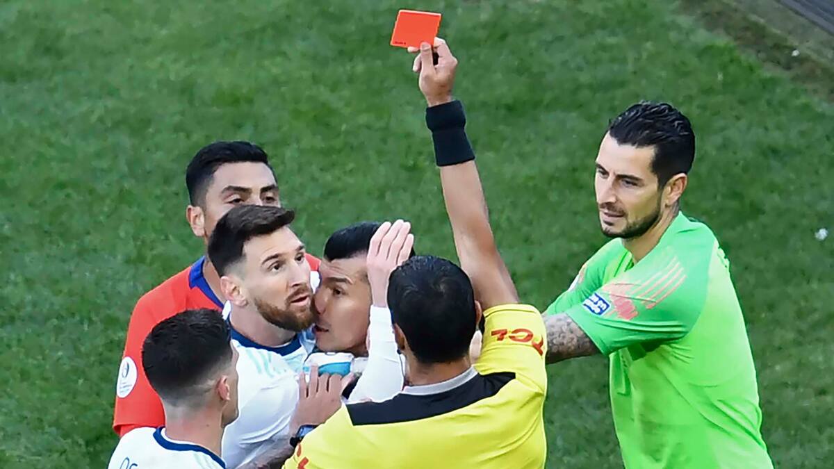 La Confederación Sudamericana de Fútbol (Conmebol) suspendió a Messi una fecha y lo multó con 1.500 dólares por la expulsión ante Chile.