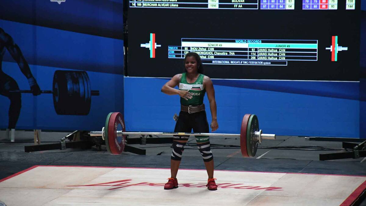 La pesista nacida en Turbo, Antioquia, cumplió 18 años el pasado martes y ayer los festejó en las prueba de los 489 kilogramos donde obtuvo tres medallas de oro en las modalidades de envión, arranque y total.