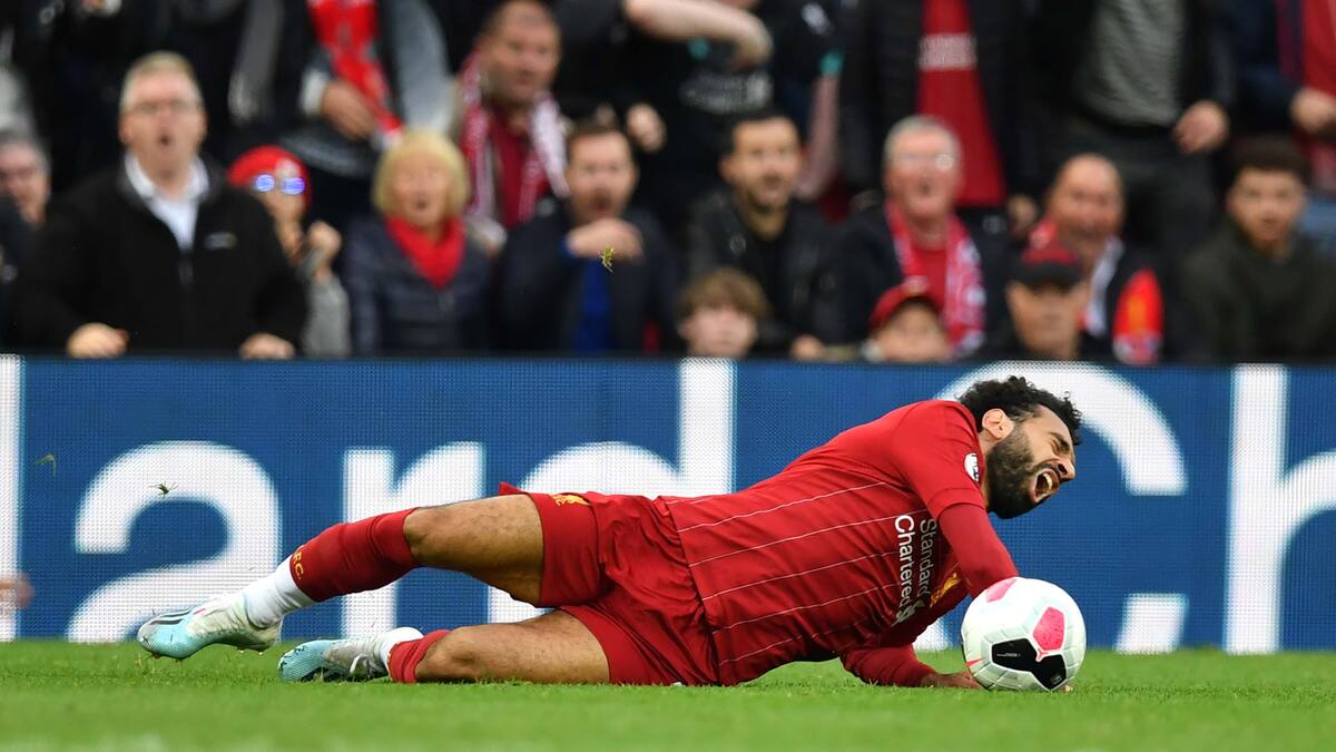 Dolido tras una entrada del centrocampista de los Foxes Hamza Choudhury, en el tiempo adicional de la victoria 2-1, que permite a los Reds situarse a ocho puntos del City en lo alto de la Premier, Salah se marchó a los vestuarios cojeando.