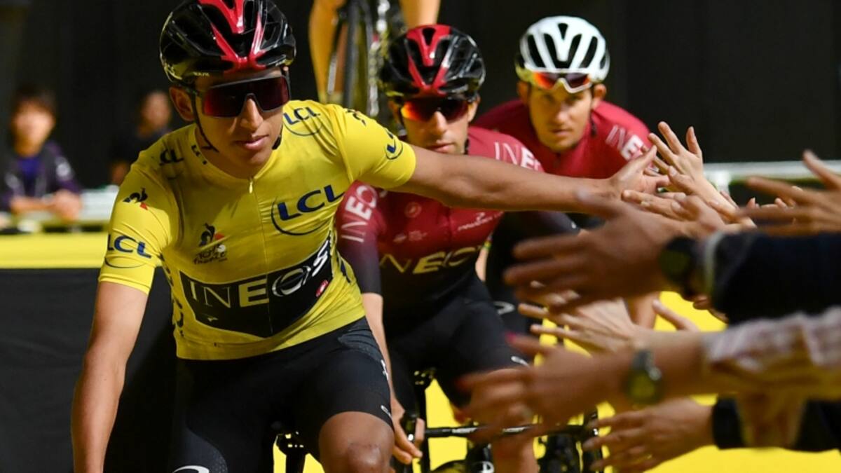 El colombiano Egan Bernal, campeón del Tour-2019, y el español Jonathan Castroviejo arroparon a su compañero del equipo Ineos en la única vuelta de la contrarreloj por equipos, que supone el regreso a la competición del británico desde sus múltiples fracturas, en especial la del fémur, producidas al caerse en junio durante el reconocimiento de una contrarreloj en el Criterium del Dauphiné (Francia).