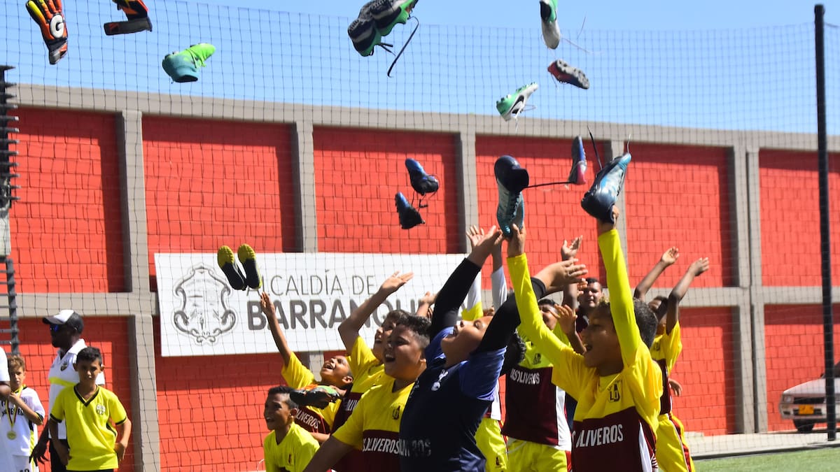 Al final del partido, la escuela Luis Oliveros celebró con euforia y lanzando lo guayos hacia arriba, celebración, que se les ha vuelto costumbre siempre que consiguen un triunfo.