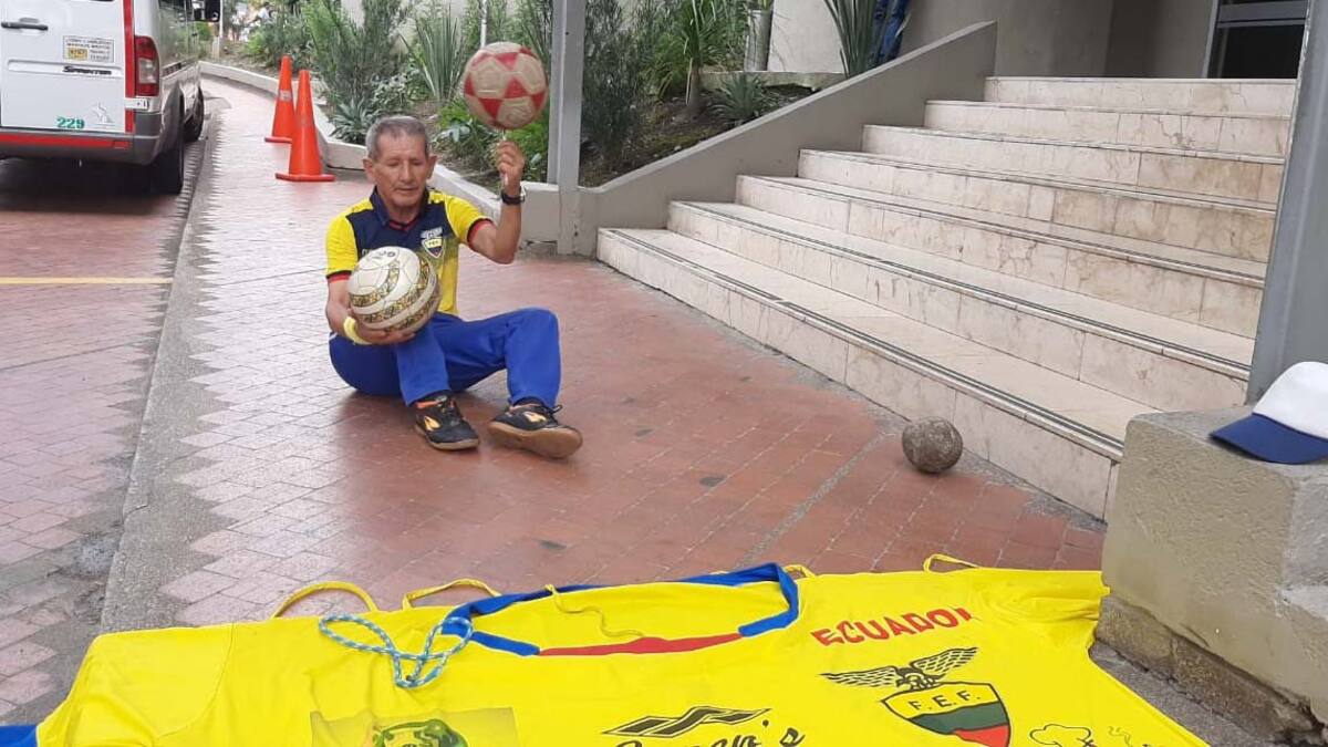 'Hago dominio con el pie. He ganado concursos nacionales en Ecuador por eso me dicen el rey de la cascarita, que acá en Colombia le llaman la 21. Soy el pionero del balón. Tengo más 40 años dando espectáculo. He estado más con la selección de mayores. Tengo seis Copas Américas, cinco eliminatorias y estuve en Barranquilla cuando nos ganaron 3-1. He acompañado a la Sub-17, a la selección de mujeres y ahora aquí en el Preolímpico. He vivido casi toda mi vida rodando con el balón', apuntó el hombre oriundo de Portoviejo en la provincia de Manabí, pero está radicado en Manta.