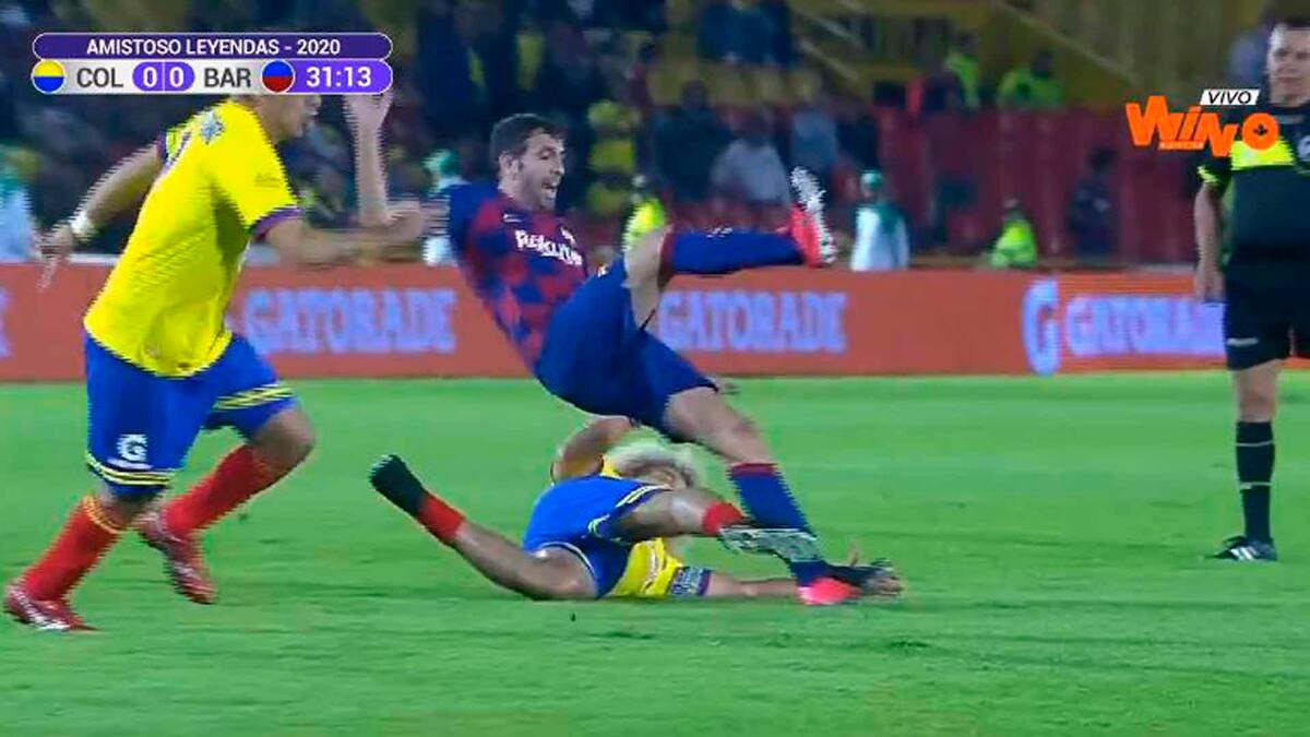 A pesar de que ya han transcurrido 18 años de su retiro del fútbol activo, ‘el Pibe’ mantiene vigente el deseo de ganar y se toma a pecho cada partido que juega, aunque sea de exhibición. Por eso en el encuentro de leyendas de la selección Colombia y el Barcelona, que terminó 1-1, el jueves pasado en el estadio Nemesio Camacho El Campín, el astro samario se olvidó de que se trataba de un amistoso y le propinó un agresivo planchazo al exfutbolista azulgrana Roberto Trashorras Gayoso.