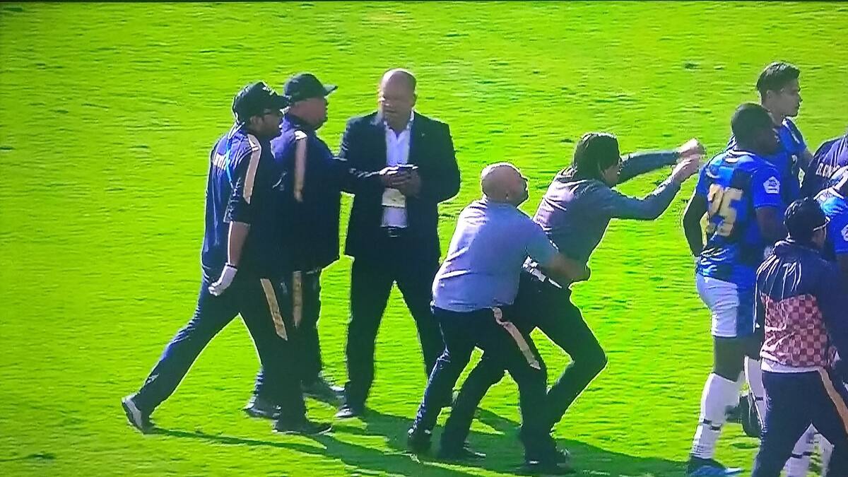 El exfutbolista terminó muy inconforme y enfadado con el arbitraje del vallecaucano Luis Sánchez en el partido entre ‘Ajedrezados’ y ‘Petroleros’. Incluso invadió la cancha al final del juego y le reclamó con vehemencia a la terna encargada de impartir justicia.