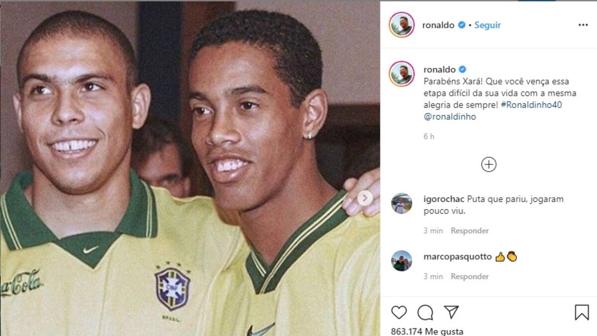'Felicitaciones tocayo. Que superes este momento difícil de tu vida con la alegría de siempre', afirmó Ronaldo Nazario en un mensajes en sus redes sociales.